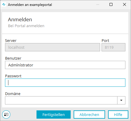 Für ein neu erstelltes Portal lautet der Benutzername "Administrator". Ein Passwort ist initial nicht erforderlich.