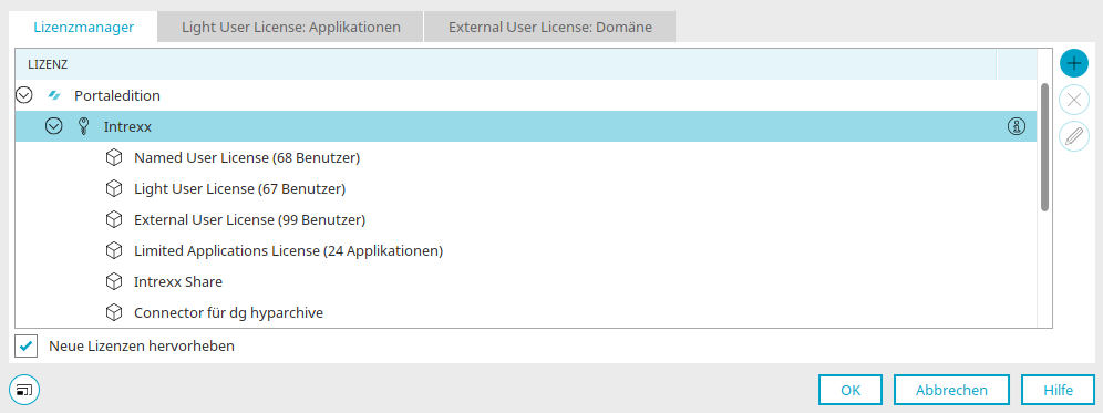 Die Lizenzen für das aktive Portal werden im Lizenzmanager verwaltet. Der Lizenzmanager befindet sich im Menüpunkt "Extras".