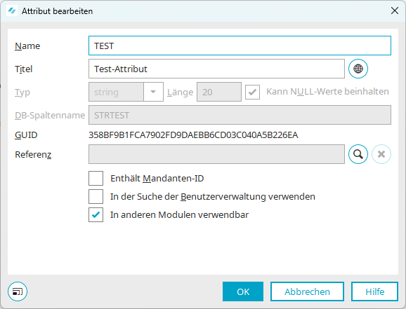 Nachträglich können beim selbst erstellten Attribut nur noch Name, Titel und die Verwendung des Attributs geändert werden. Handelt es sich um ein Standard-Attribut, kann der Titel nicht mehr verändert werden.