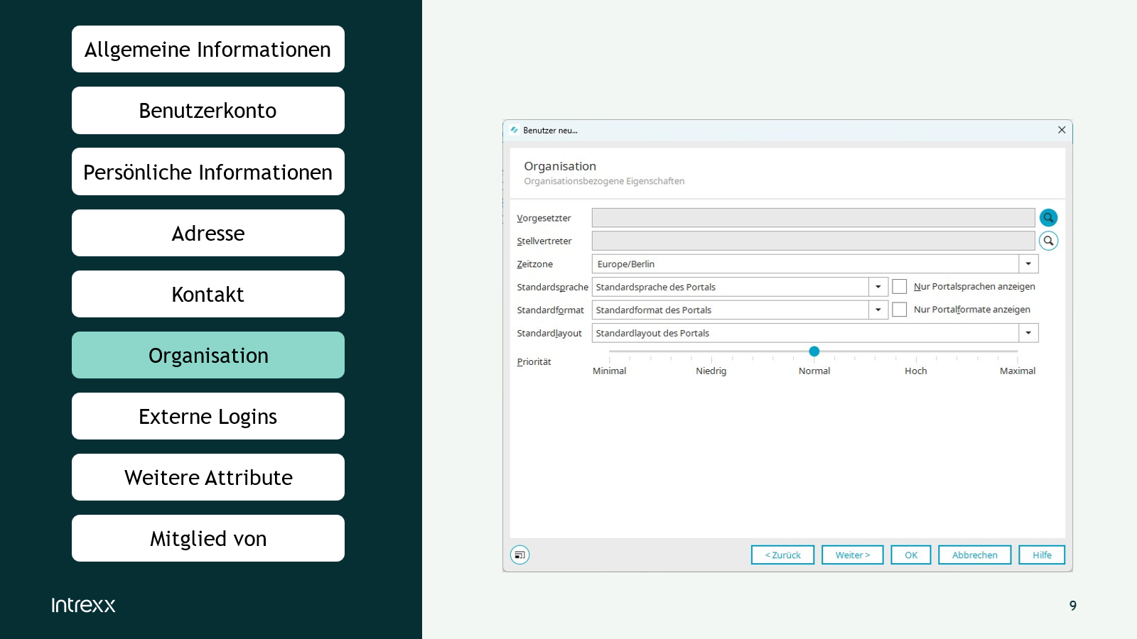 In den Organisationsdaten kann für Sprache, Format und Layout auf die Standard-Konfigurationen des Portals zugegriffen werden.
