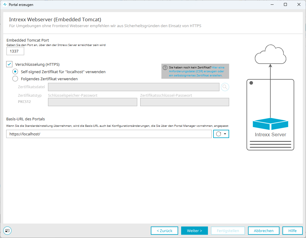 Der Port des Embedded Tomcat wird automatisch hinterlegt. Eine Verschlüsselung kann und sollte aktiviert werden. Auch hier können selbstsignierte Zertifikate oder offizielle Zertifikate hinterlegt werden.
