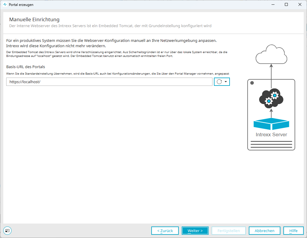 Sie verzichten damit auf die dialoggestützte Einrichtung, wie Sie bei den Typen "Internet Information Service (IIS)", "NGINX" und "Kein Frontend Webserver" zur Verfügung steht. Diese Option richtet sich an Experten, die mit der Konfiguration von Webservern bzw. dem Tomcat sehr gut vertraut sind.