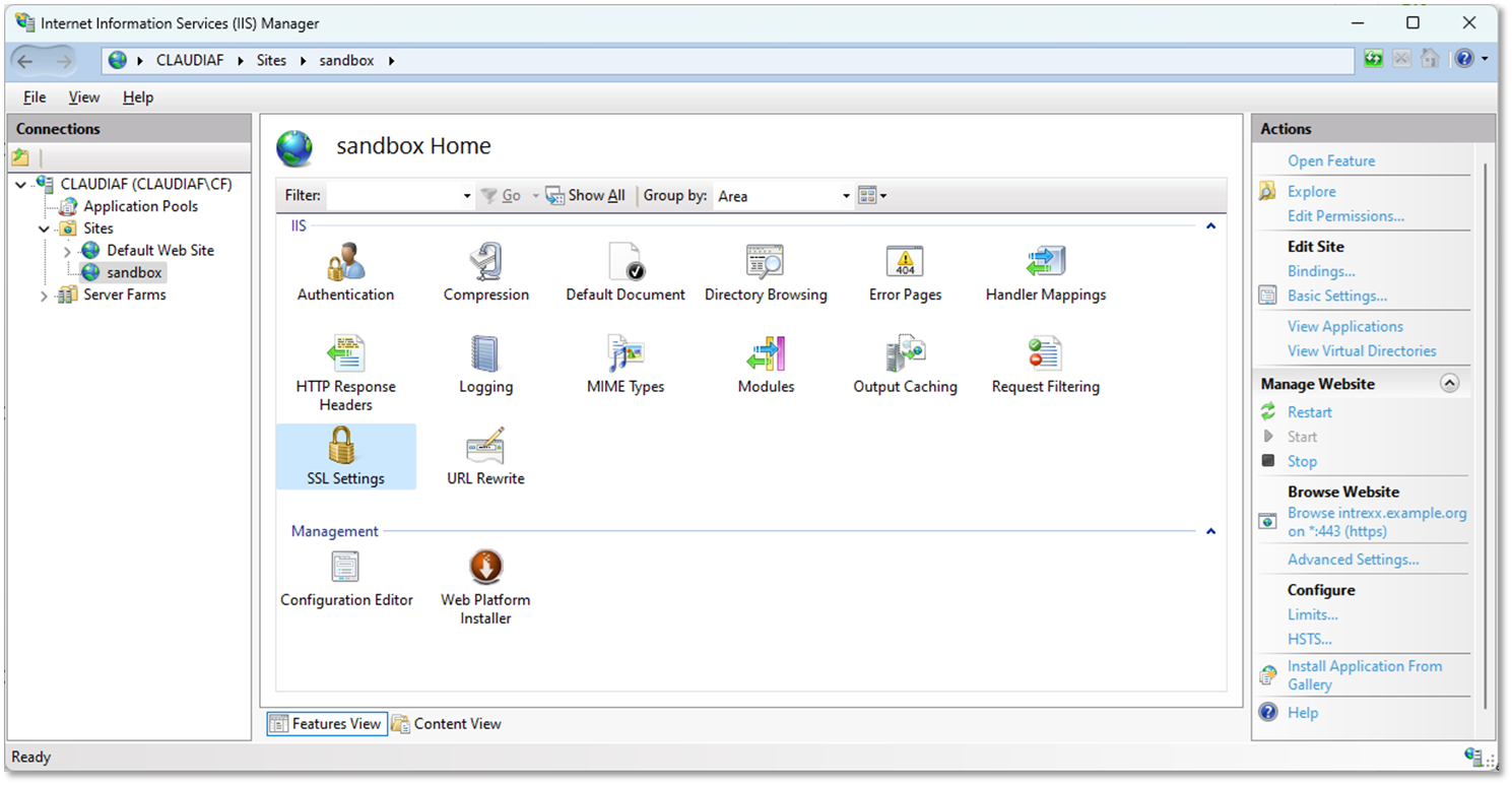 Auf der Anwendungsseite des Portals finden Sie die SSL-Einstellungen. Hier können Sie die Anforderungen für SSL- und Client-Zertifikate konfigurieren.