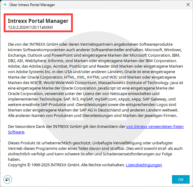 In diesem Dialog wird die aktuell installierte Versions-Nummer angezeigt.