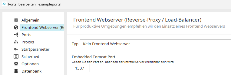 Der Embedded Tomcat-Port wird vom Frontend Webserver angesprochen. In der Regel wird er auf demselben System betrieben wie der Webserver und ist damit über localhost ansprechbar. Letztlich hängt es aber immer von der individuellen Serverkonfiguration ab.