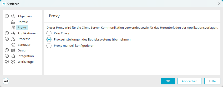Proxyeinstellungen des Betriebssystems übernehmen