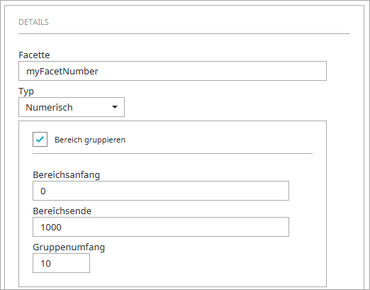 Für eine Facette mit Typ "Numerisch" kann je ein Bereichsanfang und -Ende hinterlegt werden.