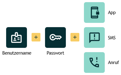 Die Multi-Faktor-Authentifizierung kombiniert zwei Faktoren (Benutzername mit Passwort + SMS/ Telefon/ Authentifizierungs-App), wodurch ein unbefugter Zugriff durch Dritte erheblich erschwert wird.