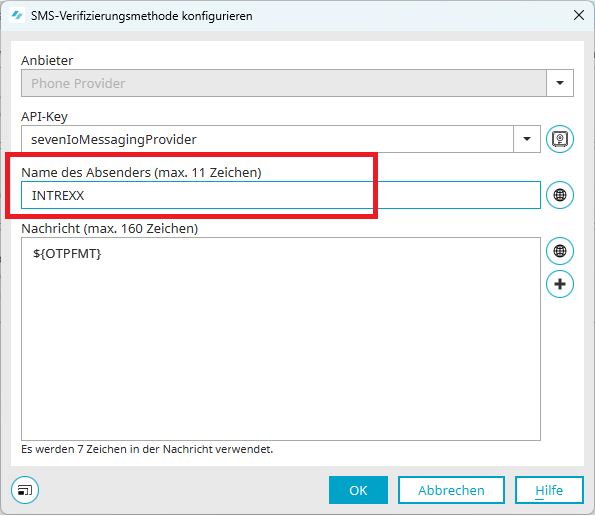 Der Name des Absenders kann mit max. 11 Zeichen beschrieben werden.