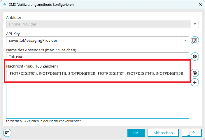 Beispiel mit Variablen ${OTPDIGIT[<i>]}