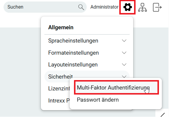 Nachdem die Multi-Faktor-Authentifizierung vom Administrator im Portal Manager aktiviert wurde, steht allen Benutzern die Systemapplikation "Multi-Faktor-Authentifizierung" für die Konfiguration der Authentifizierungsmethode zur Verfügung. Die Applikation wurde als Systemapplikation eingebunden und befindet sich automatisch in den Systemeinstellungen des Portals unter dem Eintrag "Sicherheit".