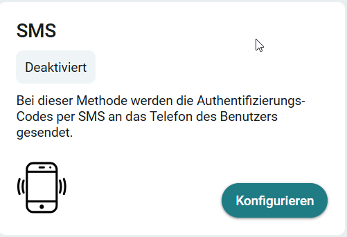 Soll die Authentifizierung über eine SMS erfolgen, klicken Sie bei der Authentifizierungsmethode "SMS" auf die Schaltfläche "Konfigurieren".