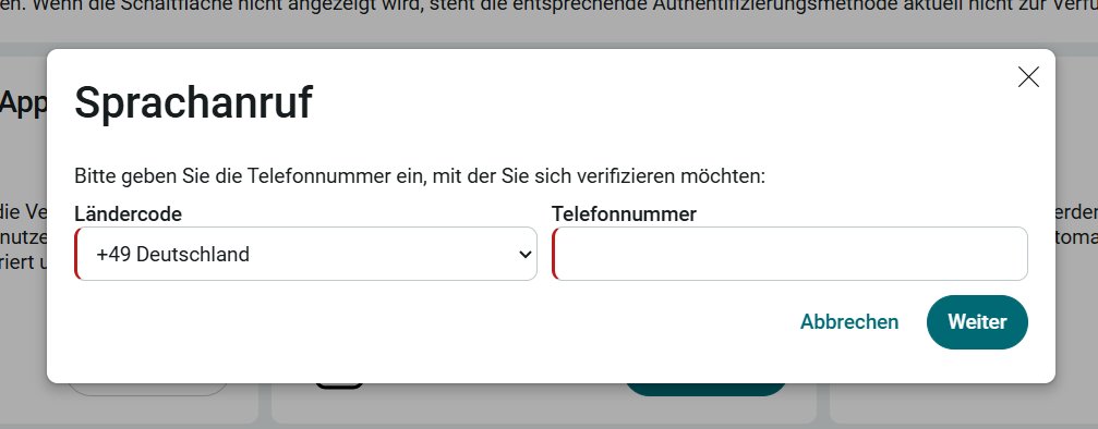 Der Verifizierungscode wird per Sprachanruf an die hinterlegte Telefonnummer des Benutzers übermittelt.