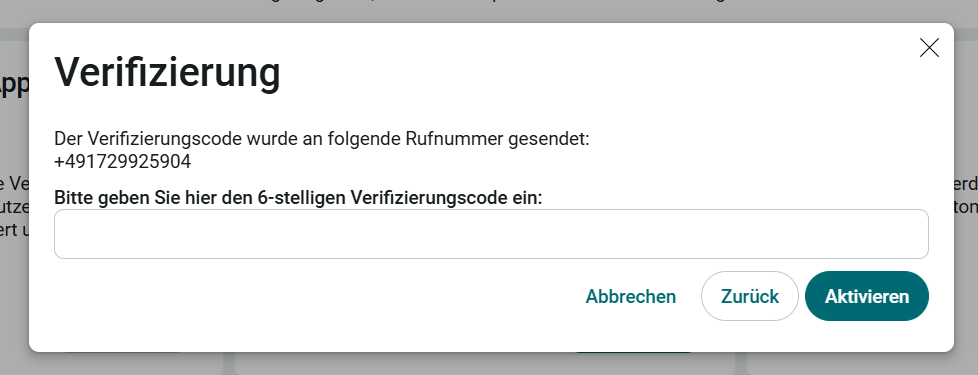 Tragen Sie den erhaltenen Code ein und klicken Sie auf "Aktivieren". Der Dienst ist damit aktiviert und wird ab sofort bei der Authentifizierung am Portal benötigt.