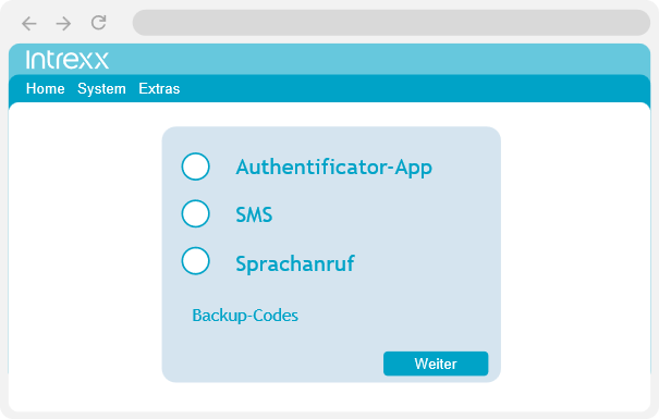 Jetzt kann eine der konfigurierten Authentifizierungsmethoden gewählt und der Verifizierungscode angefordert werden.