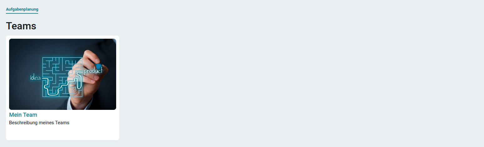Auf der Startseite werden alle Teams angezeigt, bei denen Sie Mitglied sind. Ein Portalbenutzer mit der Rolle App_Tasks_Managerkann Sie als Teammitglied aufnehmen. Mit Klick auf eine Team-Kachel wird das Team-Board geöffnet.