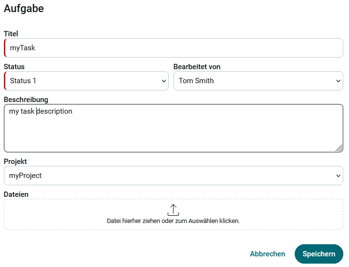 Neben Titel und Beschreibung können hier der gewünschte Status und ein Projekt zugeordnet werden.