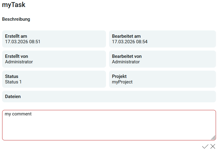 Ein Kommentar kann mit Klick auf den Titel einer Aufgabe erstellt werden.