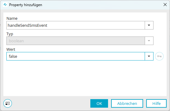 Wählen Sie die Klasse "handleSendSmsEvent" aus und hinterlegen Sie den Wert "false".
