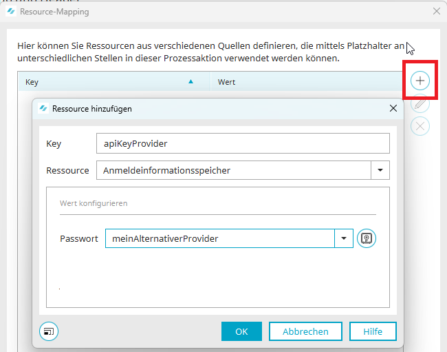 Markieren Sie bitte die Ressource "apiKeyProvider" und übernehmen Sie den Dialog mit "OK".