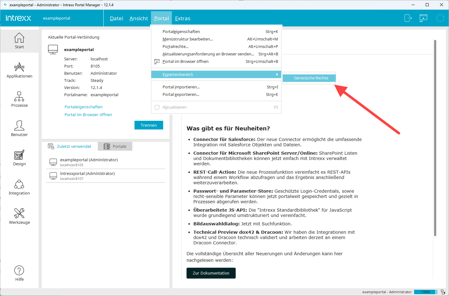 Klicken Sie im Hauptmenü auf "Portal > Expertenbereich > Generische Rechte".