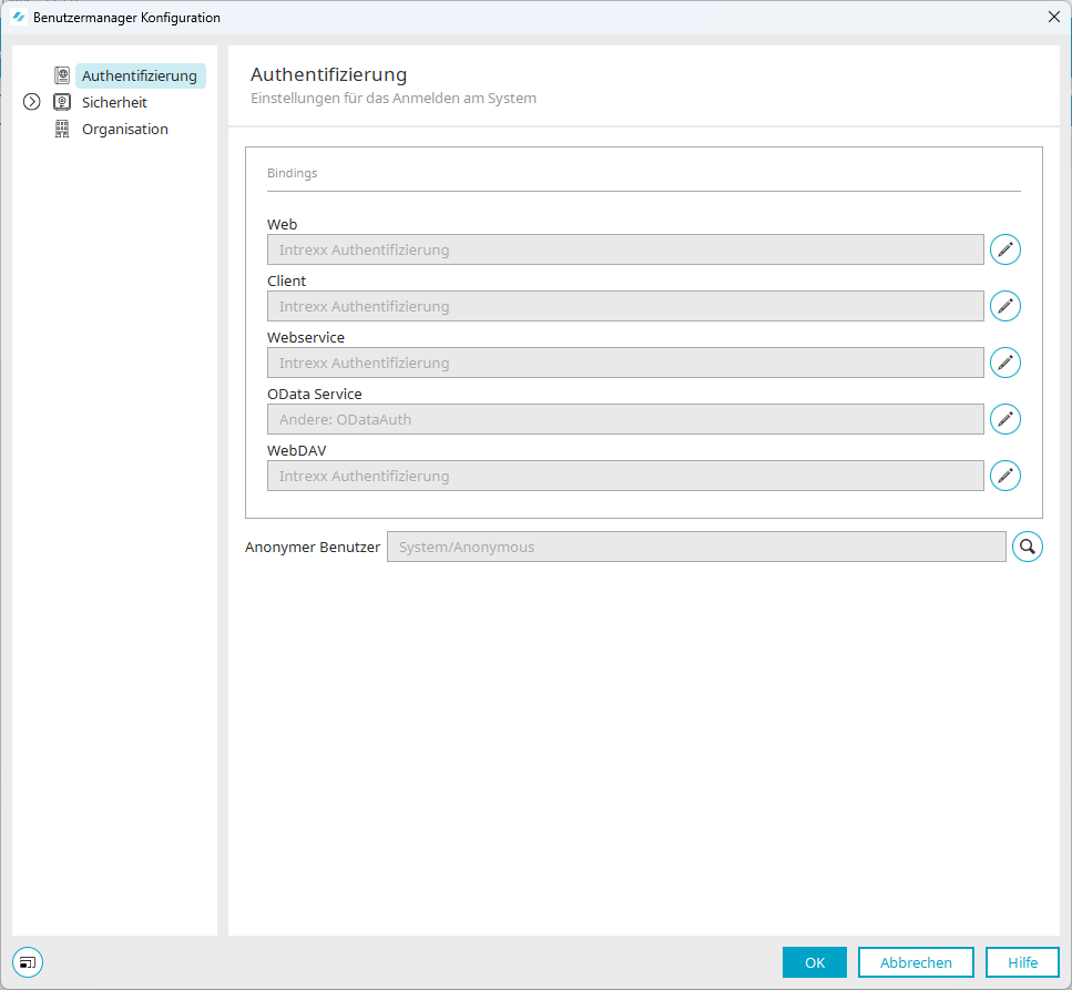 Hier wird die aktuell eingestellte Authentifizierung angezeigt.
