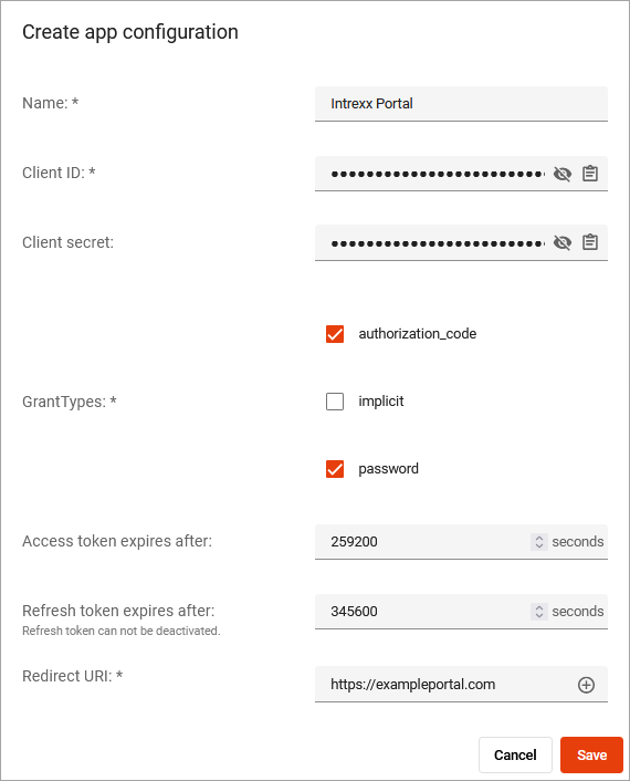 When you register your Intrexx portal with DRACOON, a Client ID and a Client Secret are generated.