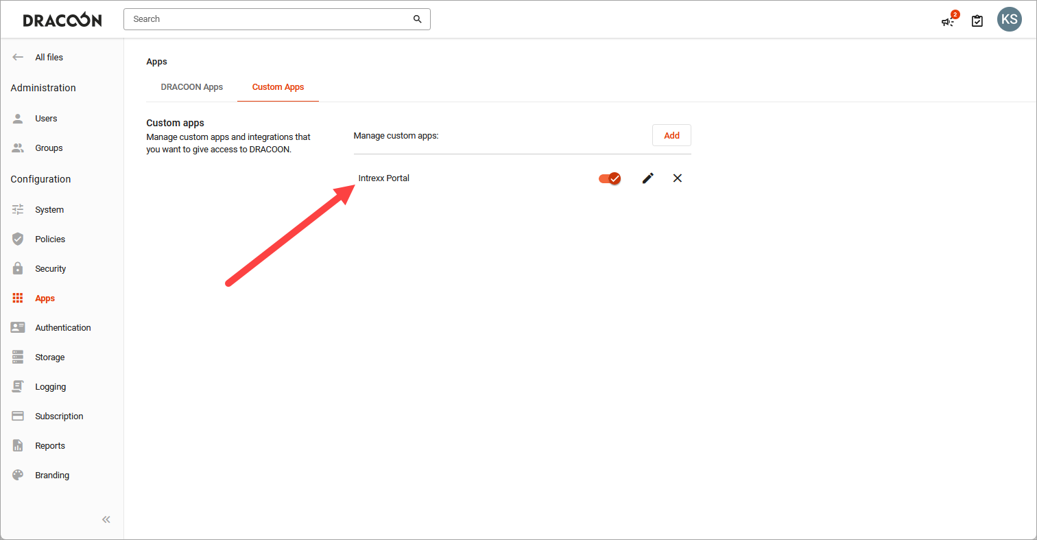 In order to access DRACOON from your Intrexx portal, you must first register it as an app in the DRACOON Web App.